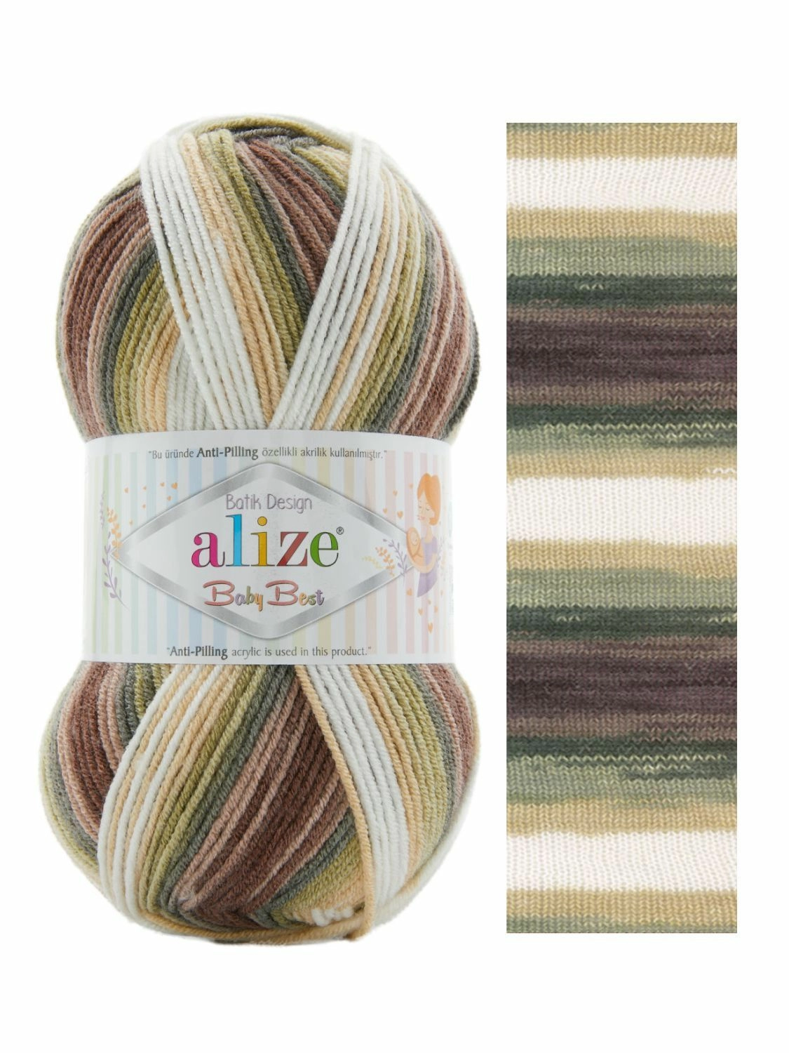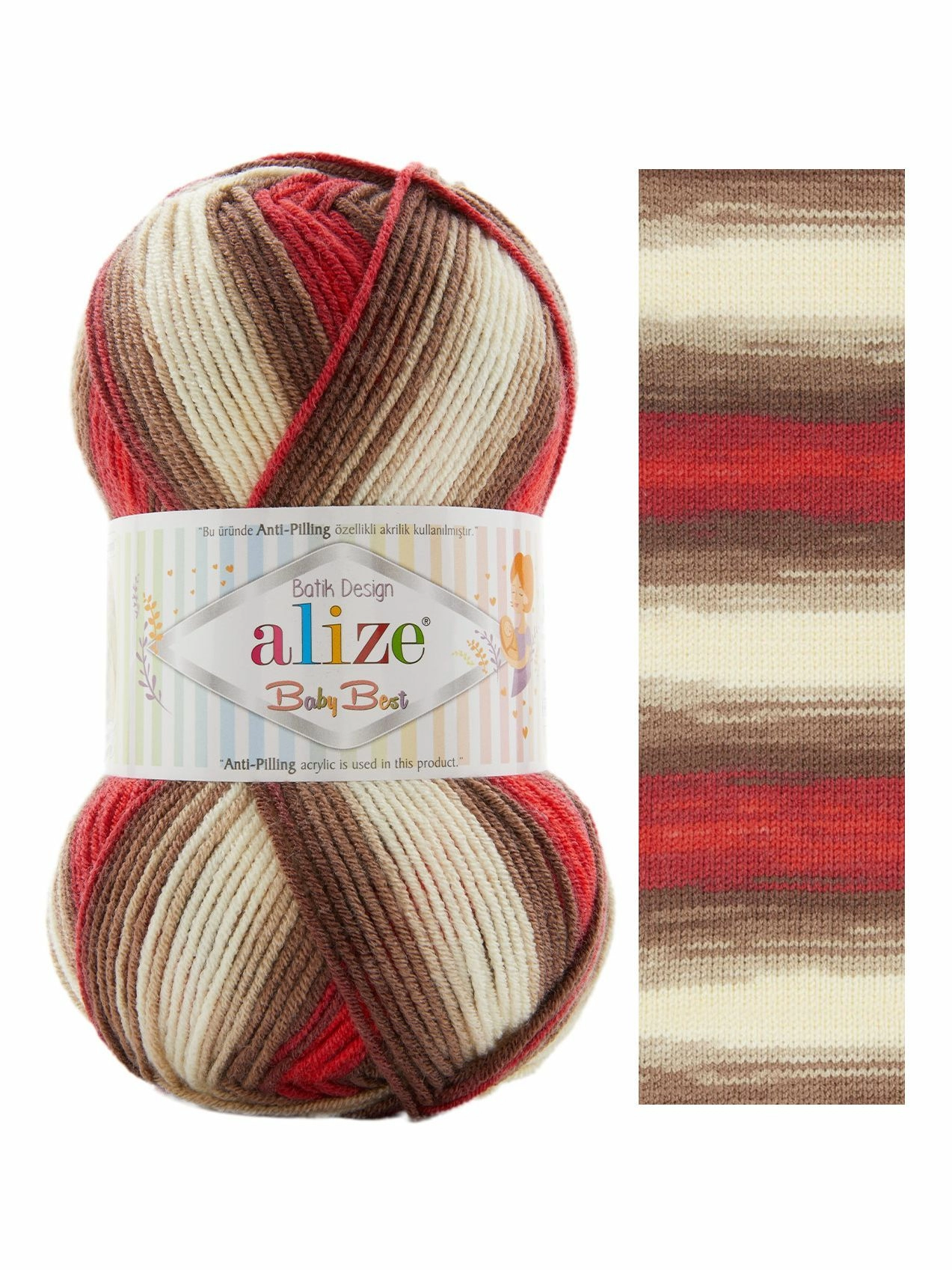 Alize Baby best batik мягкая пряжа, созданная из смеси бамбука и акрила, поэтому она гипоаллергенна и подходит для малышей самого маленького и даже раннего ясельного возрастов. Обладает легким весом, воздухопроницаемостью и гигроскопичностью, что очень важно для детских изделий.