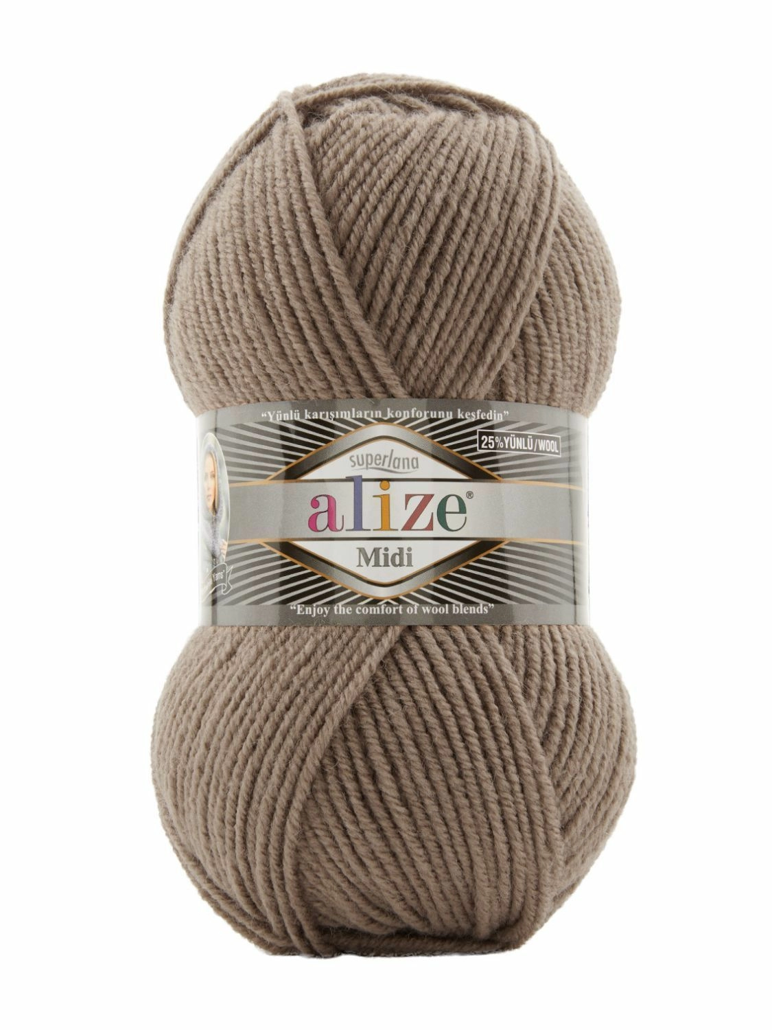 Турецкая фабрика Alize представляет вниманию покупателей пряжу Superlana midi. За счет того, что нить достаточно толстая, вещи вяжутся легко, получаются теплыми, мягкими и совсем не колючими. Поэтому из неё можно вязать детские вещи. Очень хорошо смотрятся узоры, особенно косы. Петли ложатся ровно, даже у новичка. Палитра цветов от светлых до темных. Есть, где разгуляться фантазии. Эта пряжа влюбляет в себя с первой петельки.