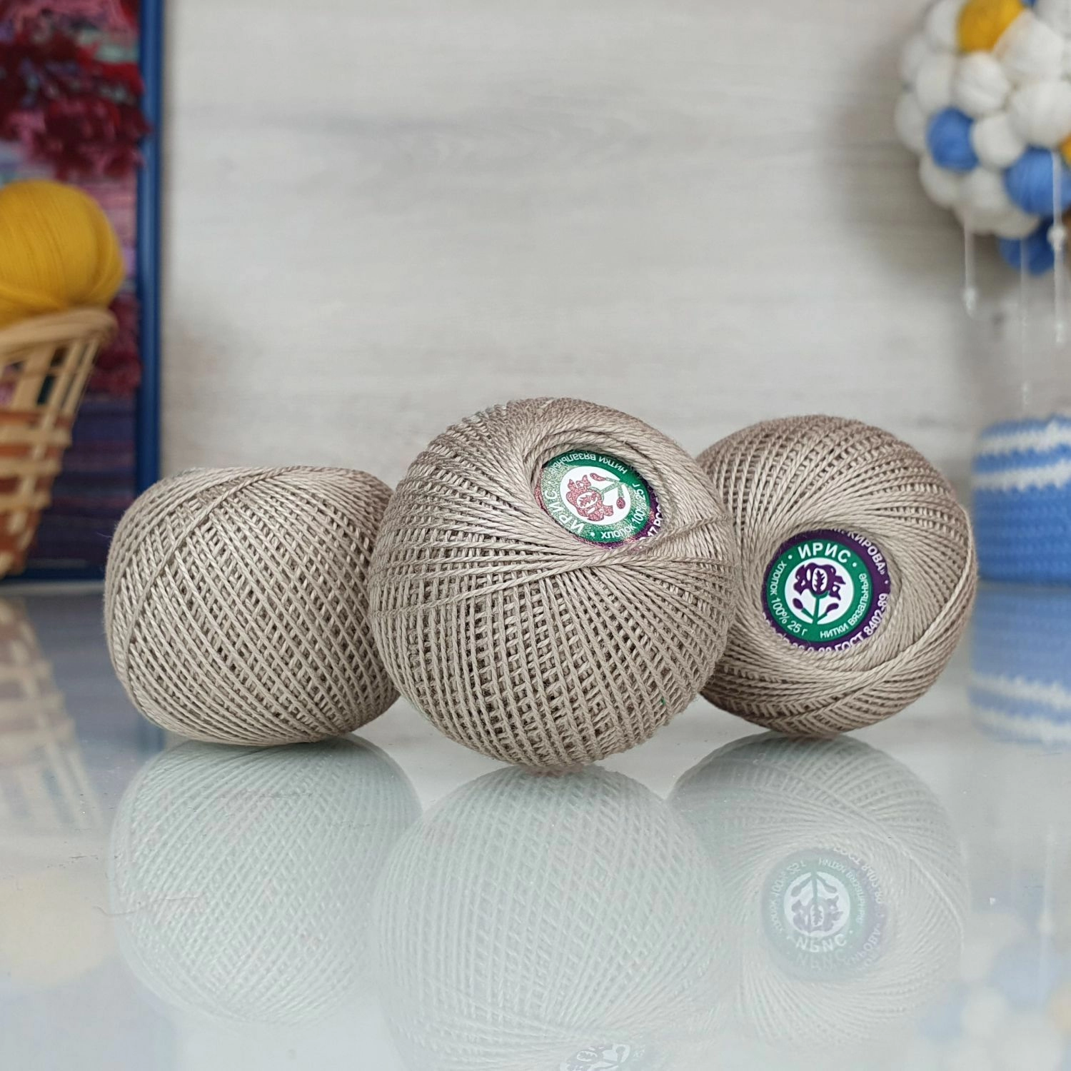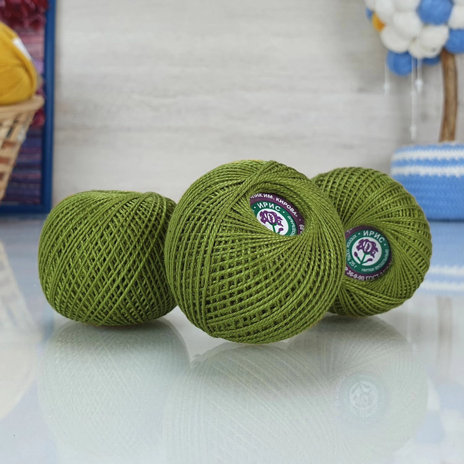 Фабрика имени С. М. Кирова в Санкт-Петербурге производит нитки "Ирис".