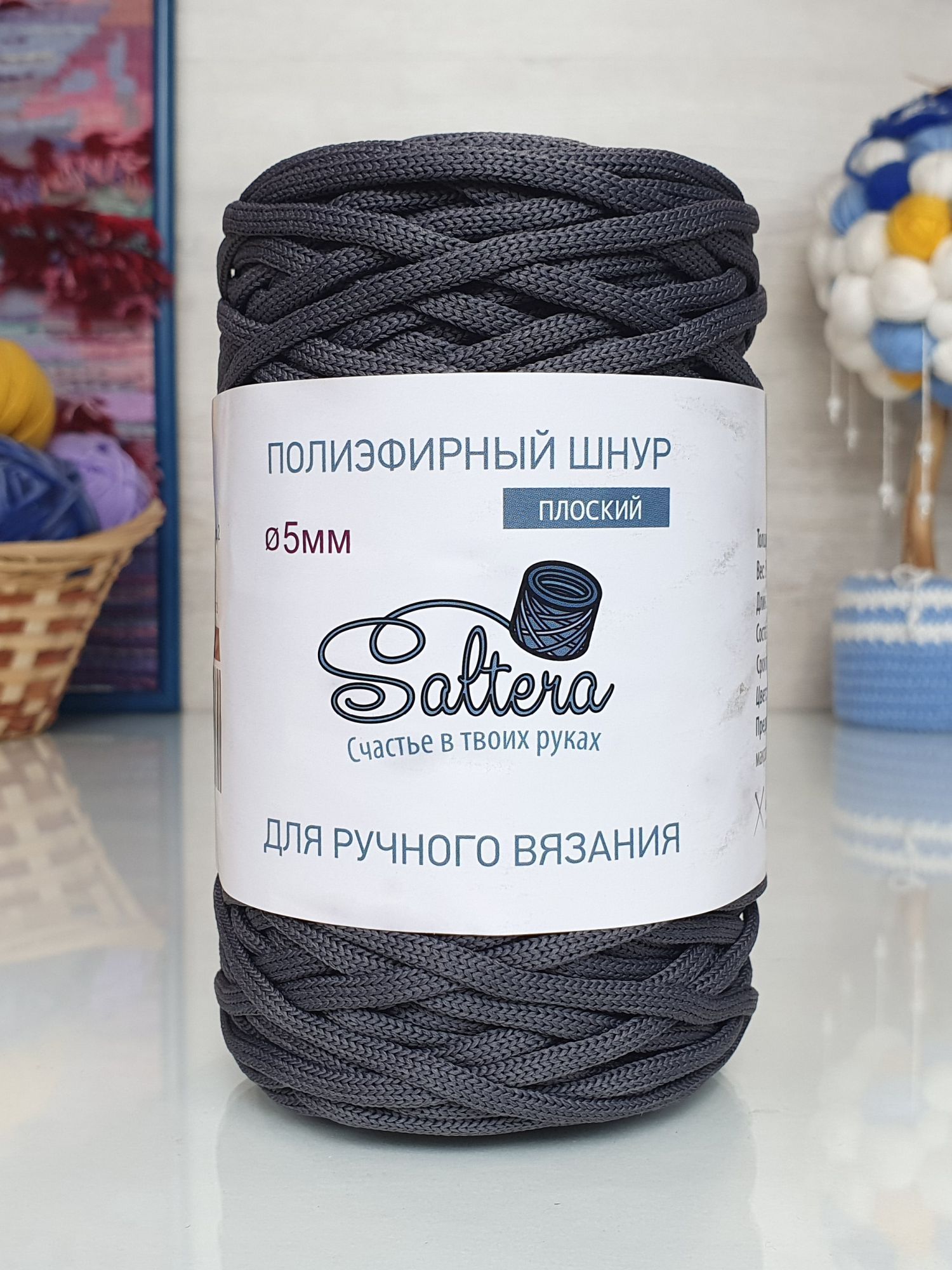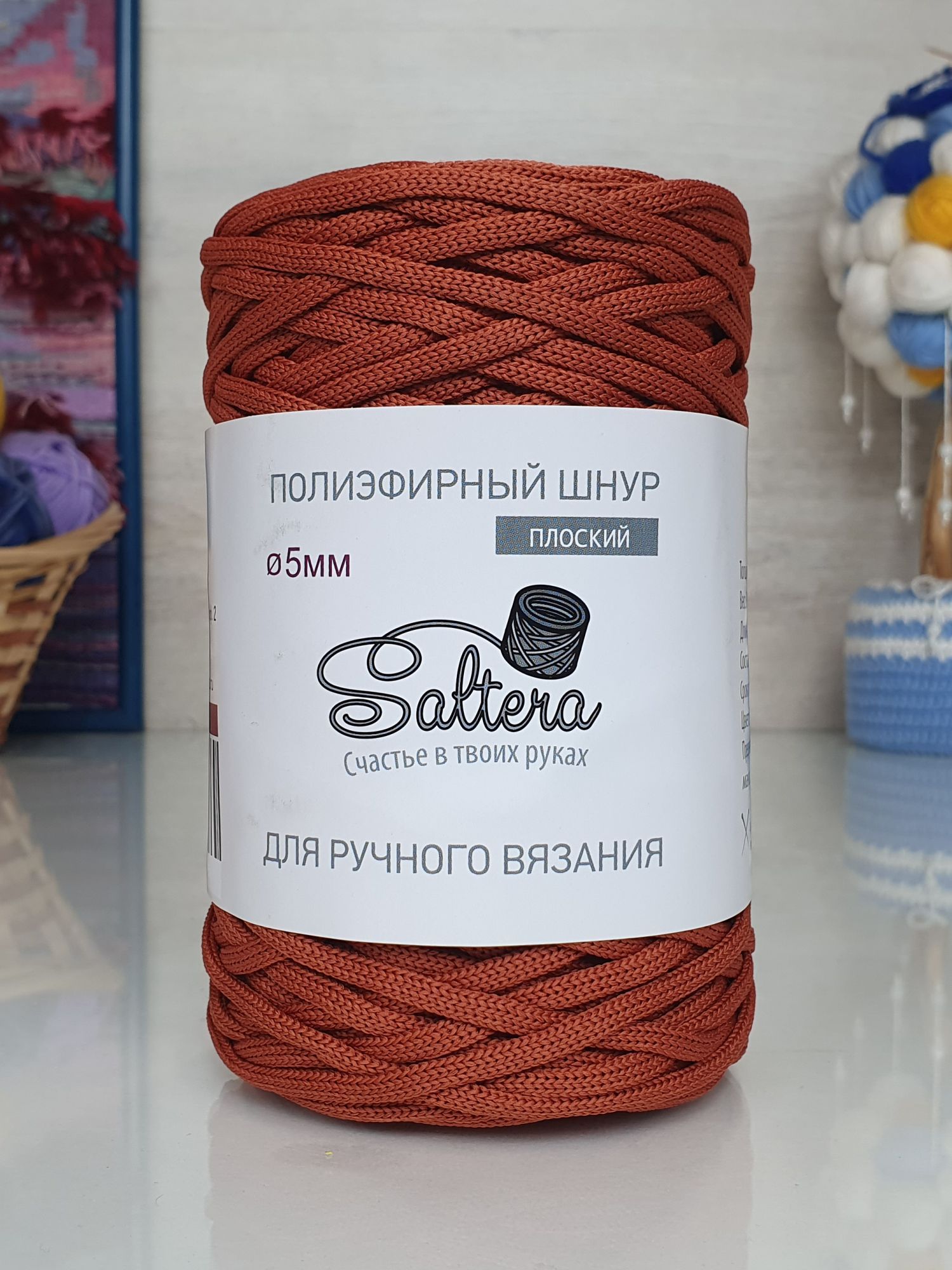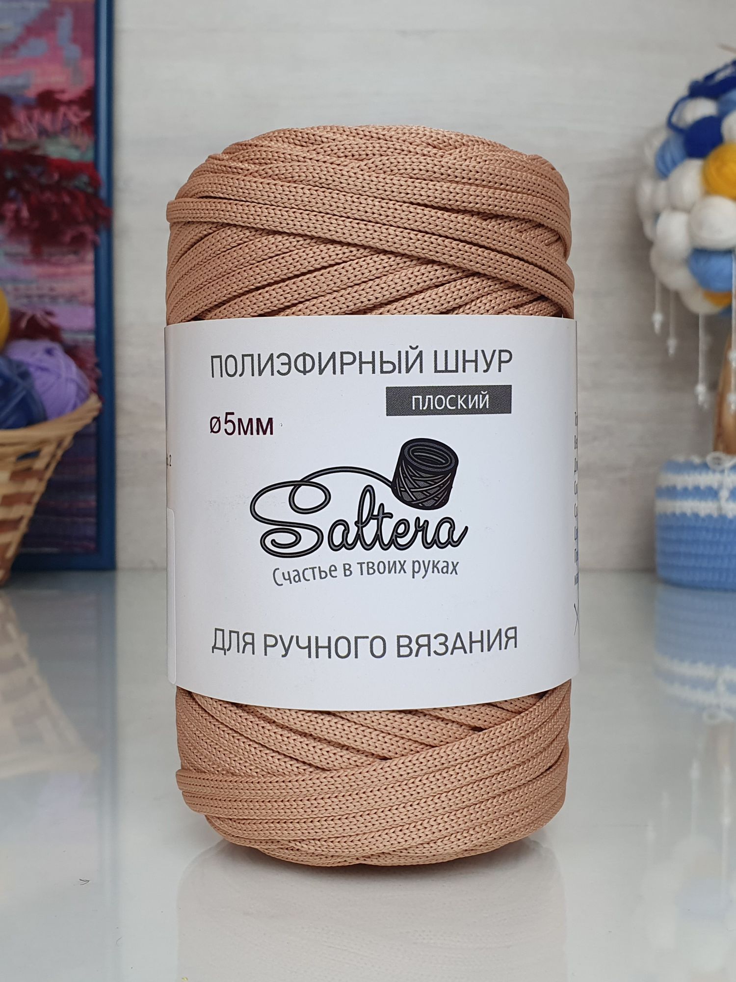 Полиэфирный шнур Saltera 5 мм, без сердечника. Разнообразием оттенков расширяет пространство для полета фантазии. Главные преимуществ: надёжный, износоустойчивый, совсем слегка растягивающийся, изделие из него после мытья или полной стирки сохраняет все свои первоначальные свойства и внешний вид. Идеально подходит для вязания аксессуаров и предметов декора: сумочек, рюкзаков, корзинок, салфеток, мягких коробов, ковров. Производителем рекомендовано использовать крючок 4.5-6 мм.